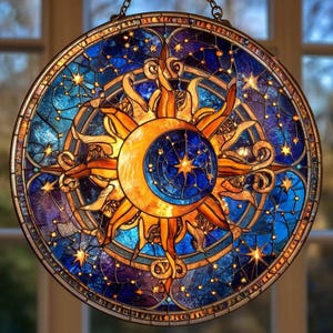 Handmade Moon Suncatcher with Natural Crystal Stones, Rainbow Maker Window Hanging, Sun & Moon Light Catcher, Handcrafted Crystal Wind Chime