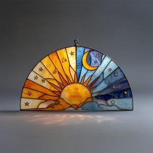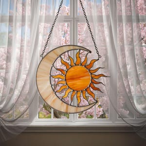 Sun And Moon Stained Glass Suncatcher, Celestial Window Hanging Decor, Sun Moon Sun Catcher, Boho Home Decoration, Spiritual Gift